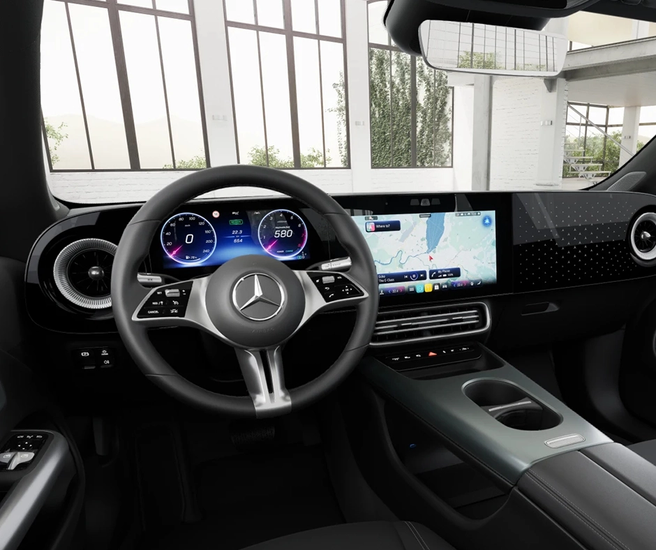 Az utastér modern és letisztult, a Mercedes-Benzre jellemző minőségi anyaghasználattal és digitális megoldásokkal. A fejlett infotainment rendszer, az intuitív kezelőfelület és az okoseszköz-integráció gondoskodik a folyamatos kapcsolattartásról, míg a vezetéstámogató rendszerek a biztonságos közlekedést támogatják városi és országúti környezetben egyaránt.